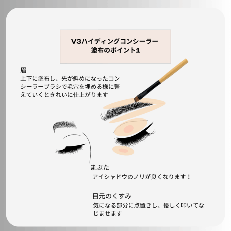🔸 眉ライン:眉の上下に塗布して毛穴を埋めるように整えると、眉がくっきり美しく。