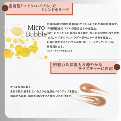 独自の「オイルインセラム工法」により、塗るたびにバブルが弾けて溶け、ヒアルロン酸(保湿成分)が肌にしっとり浸透。パッと見は分離して見えますがこれが通常仕様。